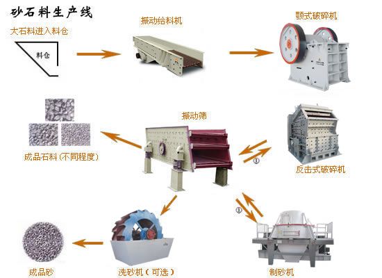 砂石生產(chǎn)線是一種生產(chǎn)建筑用砂和石料的專用設(shè)備,比傳統(tǒng)制砂機(jī)節(jié)能50%。它可以把各種巖石、砂石,河卵石制成符合各種粒度的建筑用砂,砂質(zhì)粒度均勻、耐壓強(qiáng)度高,遠(yuǎn)比天然砂、普通錘式打砂機(jī)生產(chǎn)的砂更符合建筑要求,更能提高建筑質(zhì)量。設(shè)備具有性能可靠、設(shè)計(jì)合理、操作方便、工作效率高等特點(diǎn)。人工砂石生產(chǎn)線經(jīng)由喂料機(jī)、顎式破碎機(jī)、破碎后分別進(jìn)入(新型制砂機(jī)、反擊式破碎機(jī))通過(guò)振動(dòng)篩分級(jí)后得到所需求的多種規(guī)格石子,砂子經(jīng)由高效洗砂機(jī)后得到您所需求的成品砂。 砂石生產(chǎn)線是按照出料類型來(lái)定義的,生產(chǎn)出來(lái)的成品包括石料和人工砂,也稱砂石料生產(chǎn)線。相當(dāng)于石料生產(chǎn)線和制砂生產(chǎn)線的結(jié)合。在筑路,建筑等的原料廠內(nèi),往往需要砂石料公有的生產(chǎn)線,本套砂石料生產(chǎn)線設(shè)備便能滿足需要石料和人工沙同時(shí)生產(chǎn)的要求。